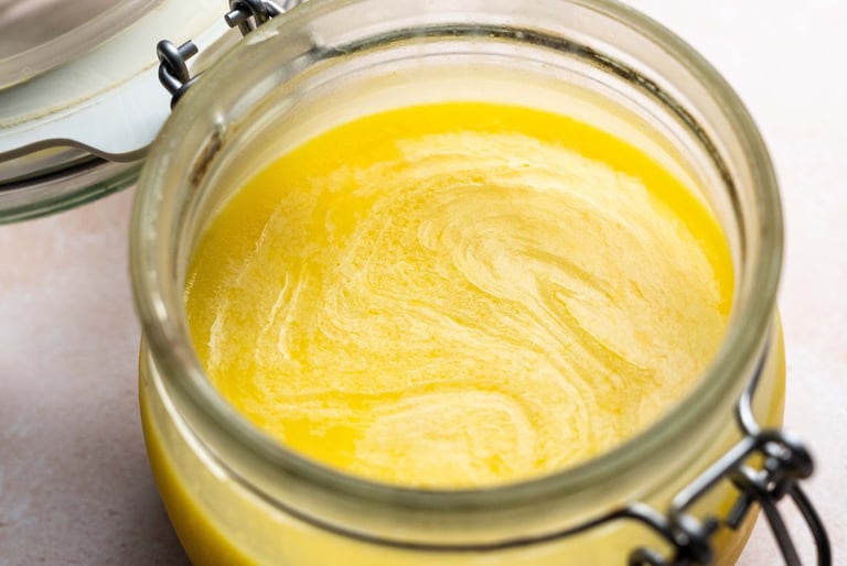 Laissez refroidir à température ambiante, le ghee prendra une texture légèrement crémeuse et une couleur opaque.