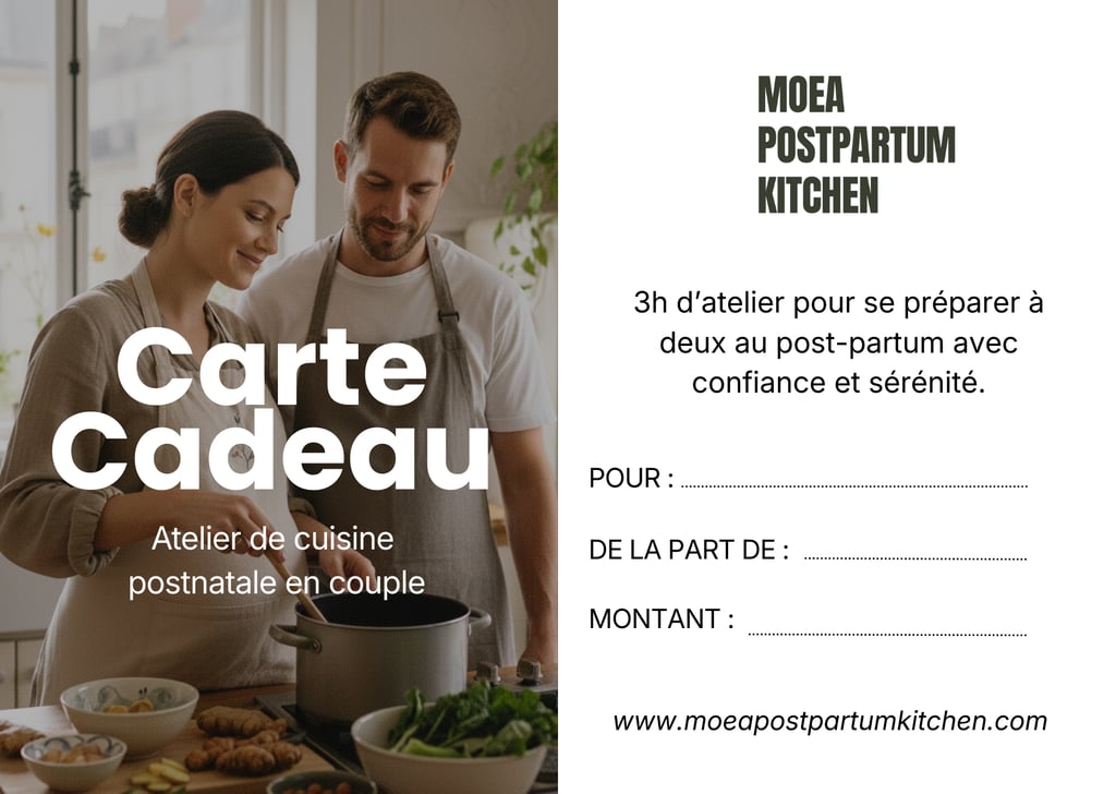 Vous souhaitez avancer à deux dans cette préparation, comprendre les besoins du post-partum et cuisiner ensemble des recettes adaptées à votre rythme et vos goûts ? L’atelier en couple renforce la complicité et vous prépare ensemble à accueillir votre bébé.